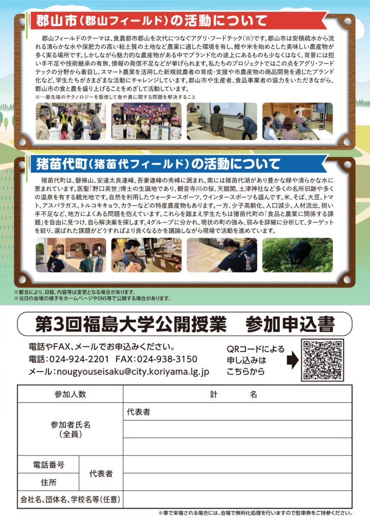 郡山・猪苗代フィールド成果報告会に参加を希望される方は参加申込書からの申し込みをお願いいたします。