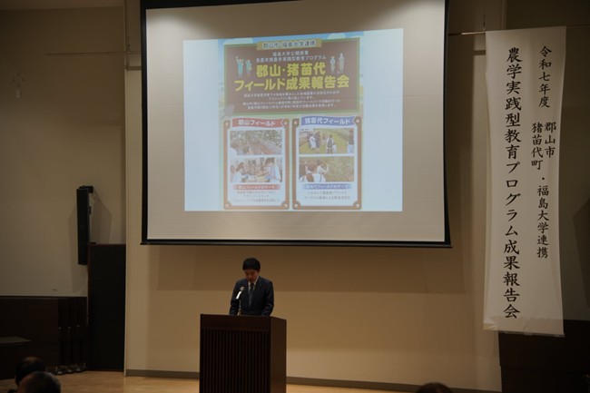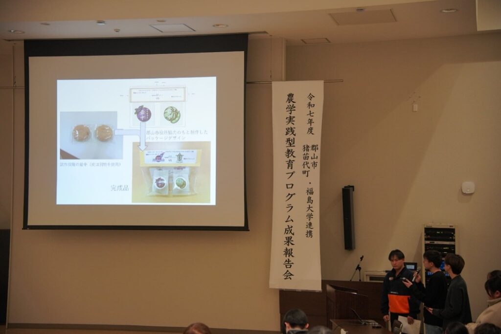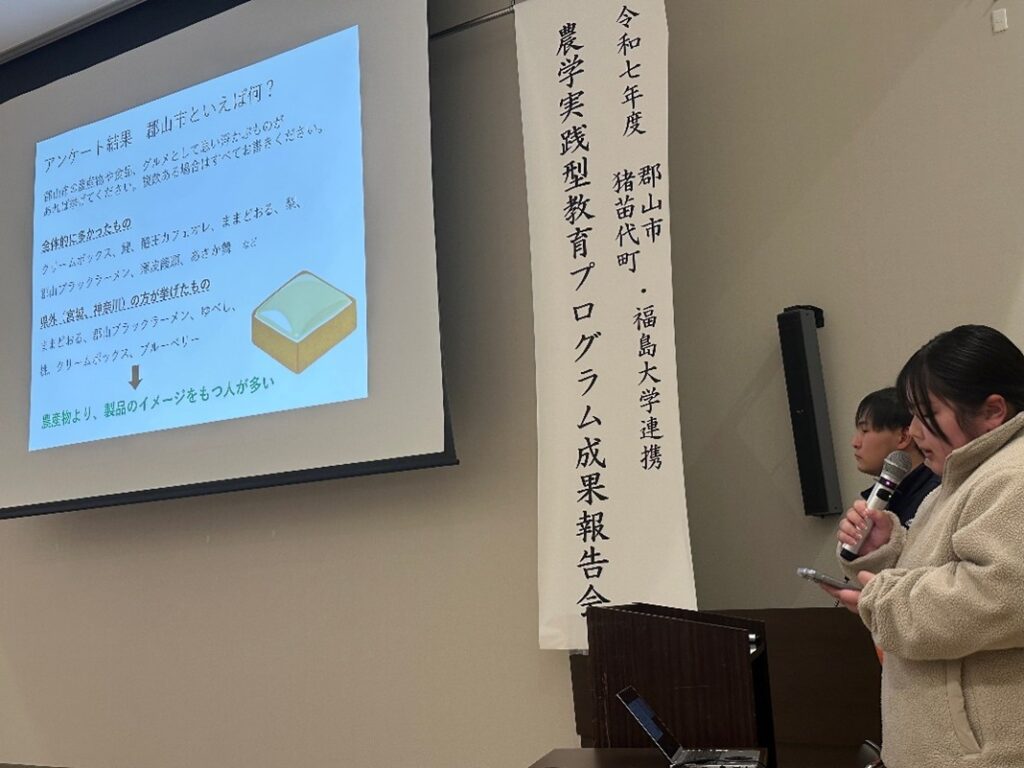 令和8年1月30日(金)に郡山市役所にて農学実践型教育プログラム郡山フィールドでの成果報告会を実施致しました。昨年度に引き続き,郡山市民や郡山広域圏の高校生に対し公開授業として開催し,多くの方に参加頂きました。