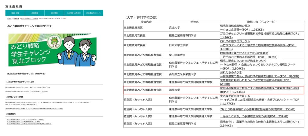 第2回みどり戦略学生チャレンジ東北ブロック 東北農政局みどり戦略推進官賞を受賞